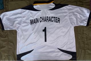 Camiseta de la Selección Española de fútbol, conmemorativa del Mundial 2010. - Diseño blanco con detalles dorados. - Escudo de España. - Inscripción Campeones del Mundo 2010 en el cuello. Gastada la parte de las letras de atrás y el bordado de la izquierda algo levantado como se ve en las fotos.