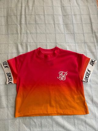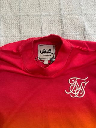 Camiseta Siksilk. NO es original, pero está bastante conseguida. Es de manga corta con un estampado muy bonito con degradado de colores. Viene larga (pregunta por medidas). Cuenta con el logo Siksilk bordado en el pecho. Es muy cómoda. La pueden usar tanto hombres como mujeres.