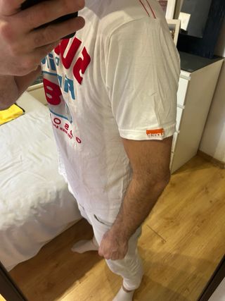 Camiseta de manga corta con un diseño moderno y juvenil. - Tejido ligero y transpirable. - Detalle de logo en el pecho. - Acabado desgastado. En la segunda foto se aprecian unas manchitas.
