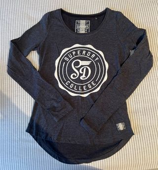 Preciosa camiseta Superdry de manga larga, talla S. Es de color azul petróleo y tiene un tacto suave. - Diseño elegante y moderno. - Perfecta para cualquier ocasión. - Se encuentra en muy buen estado.