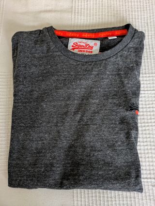 Camiseta de manga corta Superdry en color gris jaspeado claro. Con el logo de Superdry bordado en el pecho. De mujer y talla L. A 8€. Precio negociable si se vende con más productos de mi perfil.
