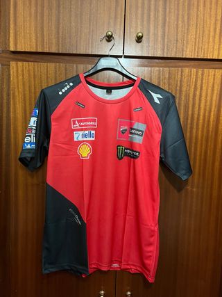Preciosa camiseta de la marca Ducati Lenovo. Luce impecable, como nueva. - Es de color rojo y negro. - Presenta el número 93 de Marc Márquez en la espalda. - Incluye varios patrocinadores como Lenovo, Monster Energy y Shell. - Talla L.