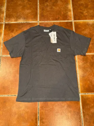 Camiseta de manga corta Carhartt en color gris. Presenta un bolsillo en el pecho con el logo de la marca. - Logo de Carhartt en el bolsillo.