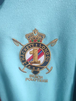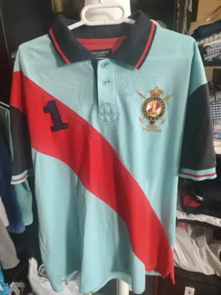 Polo de manga corta de la marca Hackett. - Diseño con franja diagonal roja. - Número 1 en color azul marino. - Escudo de la marca bordado en el pecho. - Cuello y puños con detalles en contraste.