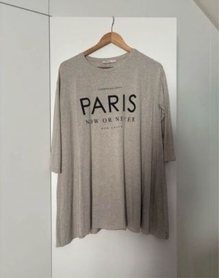 Camiseta de manga tres cuartos con estampado PARIS NOW OR NEVER. - Diseño oversize. - Tejido suave y ligero. - Estampado frontal con texto.