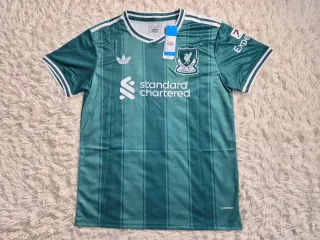 Camiseta de fútbol del Liverpool Football Club. - Diseño con el escudo del club. - Logo de Adidas. - Patrocinador Standard Chartered. - Detalle de rayas verticales.