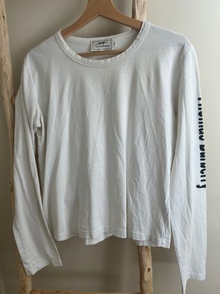 Camiseta de manga larga de la marca Tomas Burberry. - Color blanco. - Talla L. En la maga lleva la marca y por dentras 100%algodon Original Medidas en ultimas fotos