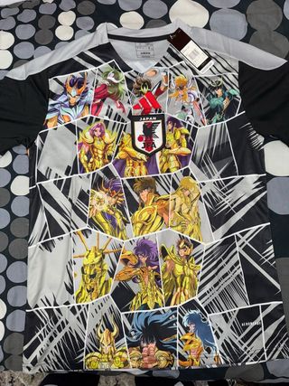 Camiseta con diseño inspirado en Saint Seiya. Logo de la marca - Estampado frontal con varios personajes. - Logo de la JFA y JAPAN en el pecho. - Tejido transpirable Aeroready.