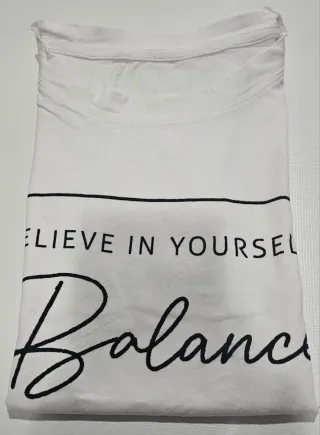 Camiseta blanca con un diseño gráfico inspirador. - Cuello redondo y manga corta. Falta de planchado por no tener plancha.🤗 Sisa 50cm. Ref3