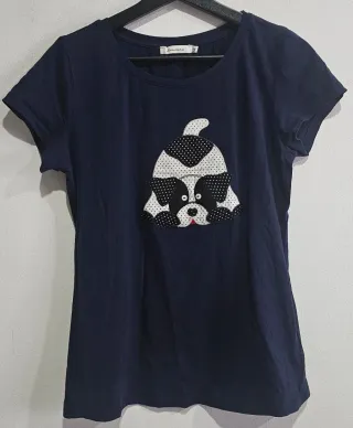 Camiseta de manga corta con un divertido diseño. - Estampado de un perro en la camiseta negra. - Tres gatos con detalles bordados en la camiseta blanca. - Cuello redondo. Falta de planchado por no tener plancha.🤗 Sisa 48cm. Ref3