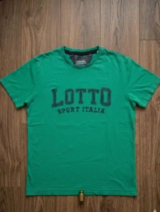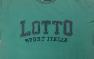 Camiseta de la marca Lotto en color verde y talla L. Presenta un diseño con el logo de la marca y el texto SPORT ITALIA en la parte delantera. - Logo de Lotto. - Texto SPORT ITALIA.