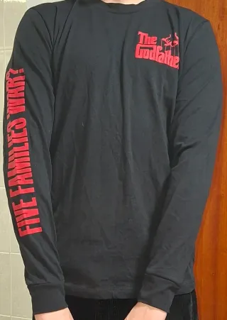 Camiseta de manga larga con diseño de El Padrino. - Estampado frontal del logo The Godfather. - Inscripción FIVE FAMILIES WAR? en la manga izquierda. - Color negro.