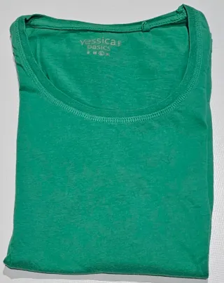 Camiseta de manga corta con cuello en pico. - Color verde oliva. - Tejido suave y cómodo. - Diseño moderno y versátil. Falta de planchado por no tener plancha.🤗 Sisa 50cm. Ref3
