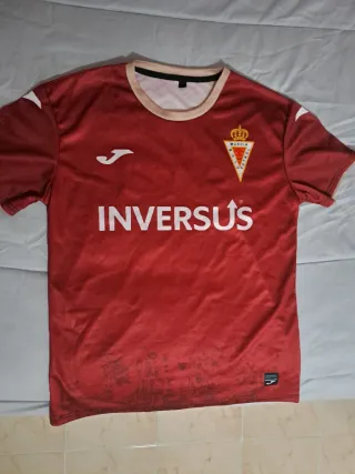 Camiseta oficial del Real Murcia Club de Fútbol, marca Joma. Diseño en color granate con detalles blancos. - Logo de Joma en blanco. - Escudo del club en el pecho. - Inscripción INVERSUS en el frontal. Talla L un poco justa. Perfecto estado