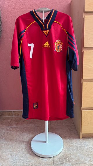 Camiseta de la selección española de fútbol. - Diseño con franjas verticales. - Escudo de España y logo de Adidas. - Número 2 en la parte frontal.