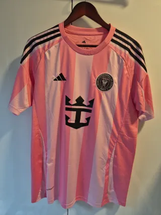 Camiseta de fútbol del Inter de Miami, talla M, con el dorsal de Messi. -Nueva a estrenar - Color rosa. - Logo de Adidas y escudo del club. - Patrocinador XBTO.