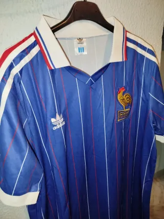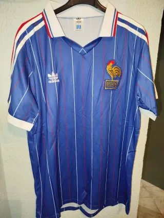 Camiseta de fútbol de la selección francesa, dorsal Zidane 10. - Diseño clásico con cuello. - Detalles en azul y rojo en mangas y cuello. - Escudo FFF en la parte superior.