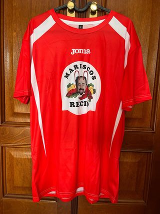 Camiseta de la marca Joma con un diseño divertido de Antonio Recio. - Color rojo vibrante. - Talla L. - Estampado frontal con imagen y texto.