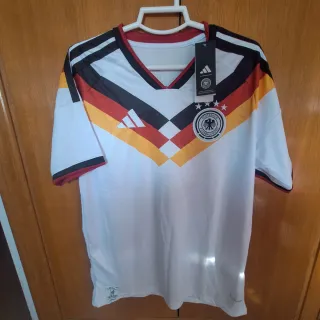 Camiseta de la selección alemana de fútbol. - Diseño con los colores de la bandera alemana. - Logo de Adidas y escudo de la DFB.