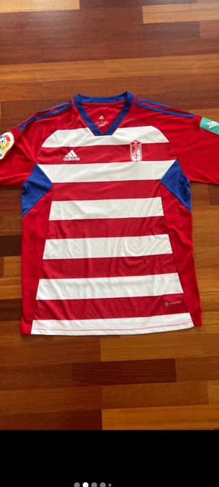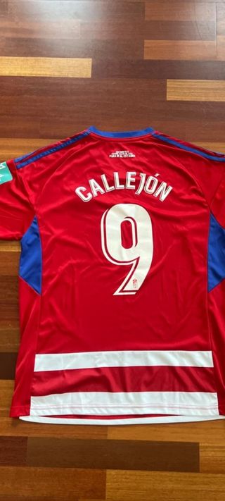 Camiseta de fútbol del Granada Club de Fútbol de la temporada 2021-2022, con el dorsal de Callejón 100% original - Diseño a rayas rojas y blancas. - Detalles en azul en los hombros y cuello. - Logo de Adidas y escudo del club bordados.