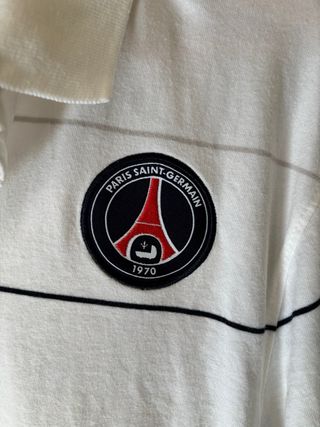 Camiseta de fútbol del Paris Saint-Germain con diseño de rayas finas. - Logo de Nike bordado. - Escudo del Paris Saint-Germain en el pecho. - Cuello tipo polo con botones.