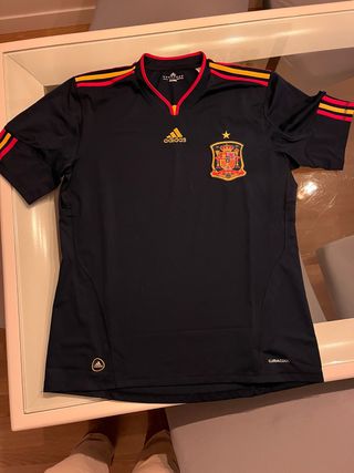 Equipación de la selección española de fútbol. Camiseta talla L Pantalon corto talla L Medias talla 4 - Diseño con bandera de España en rojo y amarillo. - Tecnología ClimaCool para mayor transpirabilidad.