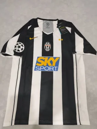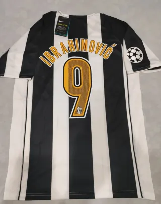 Camiseta de fútbol Juventus de la temporada 2004 con el dorsal 9 de Ibrahimovic talla L Medidas: Largo: 74 cm Axila: 53 cm - Diseño a rayas blancas y negras. - Logo de la Champions League en la manga. - Tecnología Breathe para mayor transpirabilidad.