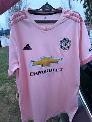 Camiseta de fútbol del Manchester United temporada 2018/2019 - Diseño en color rosa. - Logo de Adidas en la manga. - Escudo del Manchester United bordado. - Patrocinio de Chevrolet en el frontal. Talla L Dorsal 6 de Paul Pogba