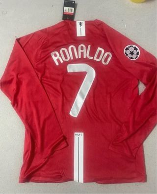 Camiseta de fútbol del Manchester United de la temporada 2008, con el dorsal 7 de Cristiano Ronaldo. - no negociable - Diseño de manga larga. - Logo de la Champions League en la manga. - Detalles blancos en la parte frontal y trasera.