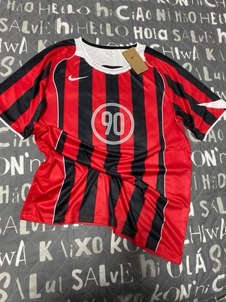 Camiseta de fútbol Nike con diseño de rayas verticales. - Diseño clásico de la línea Total 90. - Logo de Nike en el pecho. - Detalle circular con el número 90 en la parte frontal.