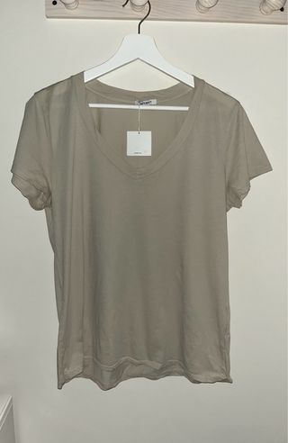 Camiseta Shon Mott, nueva con etiqueta, talla L, color sand grey Descripción: Camiseta Shon Mott 100 % algodón, nueva con etiqueta, suave y muy cómoda. Color sand grey elegante, ideal para looks casuales o combinaciones con jeans, faldas o shorts. Perfecta para tu armario de temporada. Dimensiones aproximadas: • Largo: 64 cm • Hombros: 40 cm • Espalda (axila a axila): 48 cm • Manga: 15 cm Un gran oportunidad para conseguir esta camiseta de calidad por menos Motivo de venta: No la uso 🌟 Entrega local o envío disponible