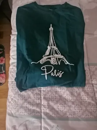Camiseta de manga larga con estampado de la Torre Eiffel y la palabra Paris. Sfera. Tiene uso pero es super chula. Edicion limitada. Ya fuera de stock. Hazte con ella. SE ENVIA CON GASTOS GRATIS - Diseño moderno y original. - Cuello redondo.