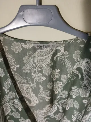 Puesta en 2 ocasiones. Es más larga por detrás que por delante. Es talla única pero puede valer para una M e incluso una L. Tiene un verde muy bonito que no se aprecia en las fotos.