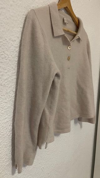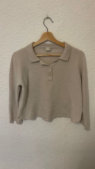 Camiseta de manga larga con cuello tipo polo y botones. - Cuello camisero. - Cierre de dos botones. - Corte cropped.
