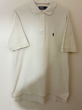 Polo original Polo Ralph Lauren de manga corta en color blanco. Logo bordado en el pecho. En buen estado, con señales normales de uso visibles en las fotos. Talla L (ver medidas): – Largo: 71 cm – Ancho axila a axila: 55 cm Prenda original.