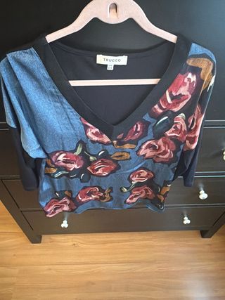 Blusa Trucco floral raso talla L Marca M pero es L