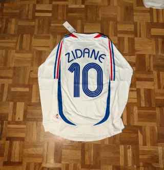 Camiseta de fútbol manga larga de la selección de Francia año 2006 con el dorsal 10 y el nombre Zidane en la espalda. Diseño de manga larga. - no negociable -Diseño icónico de la selección francesa. - Nombre y número del legendario jugador. - Manga larga para mayor cobertura.