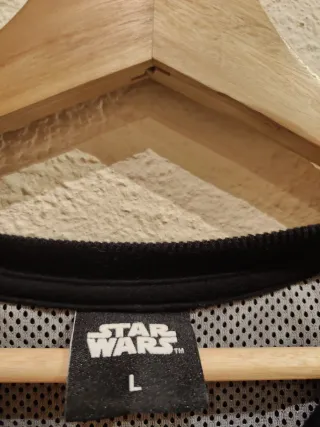 Camiseta negra de manga corta con estampado de Darth Vader de Star Wars. - Diseño icónico de Darth Vader. - Logo de Star Wars. - Cuello redondo. Talla L. Muy buen estado,de hombro a hombro 46 cm , largo 68 cm