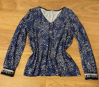 favorecedora camiseta mujer en tonos azul y negro con puños , talla 40 sin apenas uso .