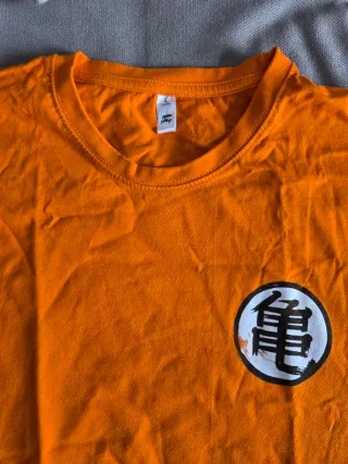 Camiseta de manga corta con el emblema de Dragon Ball. NUNCA USADA - Diseño inspirado en la serie. - Símbolo de la escuela Kame. - Tejido cómodo. - 45 cm de hombro a hombro y 70 cm de largo. - Mutenroshi, Goku, Vegeta, Gohan