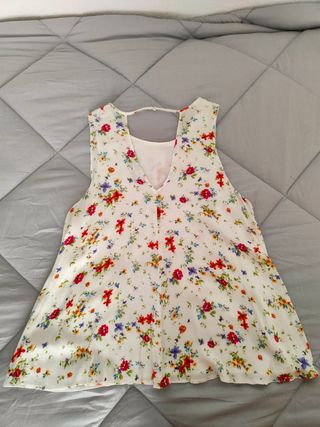 Top de Desigual con tirantes ajustables blanco estampado con flores, ajustables a la cadera. Talla L. Venta: 12,00.- €
