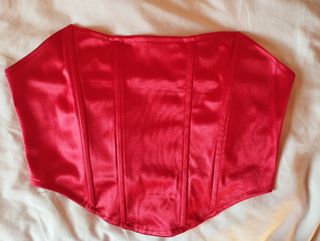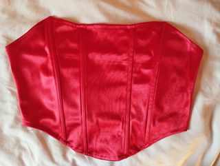 Corsé de satén en color rojo. Un diseño elegante y llamativo. - Tejido satinado brillante. - Diseño estructurado con ballenas. - Corte favorecedor. Medidas: L (Busto 81-96 cm, Cintura 69-78 cm, Largo 31 cm).