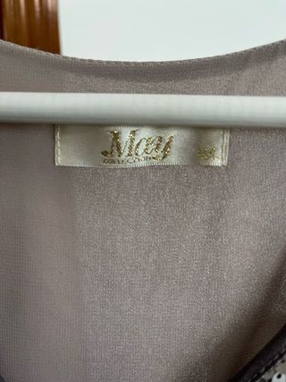 Debajo es camiseta sin mangas y encima es como una túnica transparente, formando en conjunto el dibujo en 3D.Tiene un pequeño descosido.Ancho 37. Sisa 50. Largo 60.Medidas de la camiseta interior