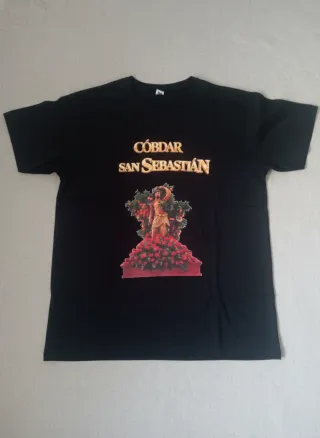 Camiseta unisex con diseño gráfico de San Sebastián. - Diseño frontal con figura y rosas. - Estampado COBDAR SAN SEBASTIÁN.