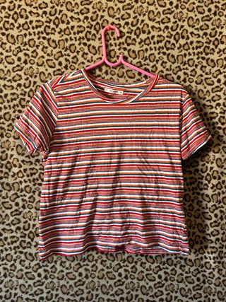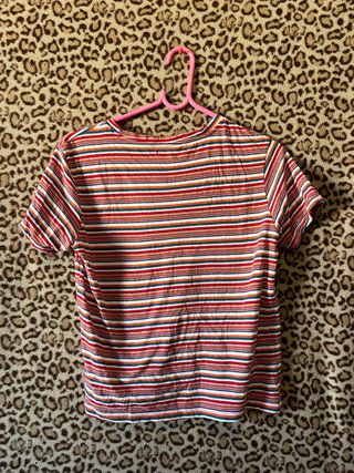Camiseta de manga corta con estampado de rayas multicolor. - Cuello redondo. - Tejido suave y cómodo.