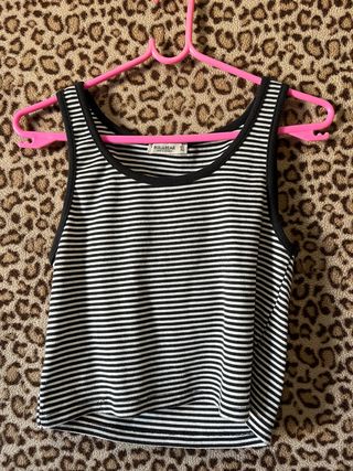 Pull&Bear Top Rayas Blanco y Negro Talla L