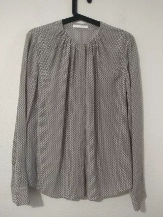 Preciosa camiseta de la marca Bimba y Lola, talla L, en color beige. - Es de manga larga y tiene un diseño elegante y sofisticado. - La camiseta está en perfecto estado y lista para usar.la parte delantera 100%seda lo demás algodón