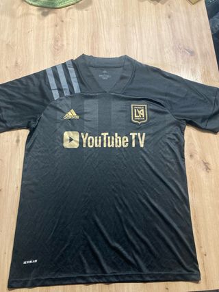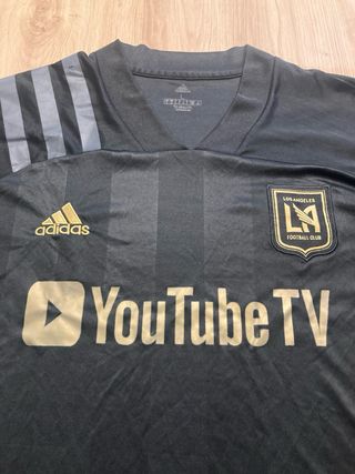 Camiseta de fútbol del LAFC - Diseño con las tres rayas de Adidas en los hombros. - Logo del equipo y patrocinador en dorado. - Tecnología Aeroready para mayor comodidad. talla L , un único defecto en el hombro (última foto)