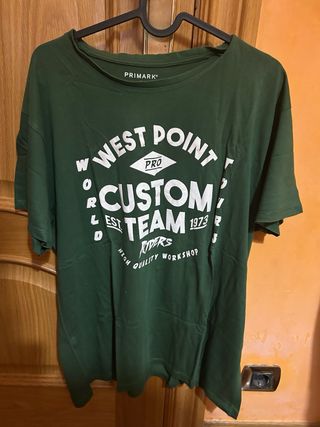 Camiseta color verde de west point de Primark con logo en la parte delantera talla l en buen estado