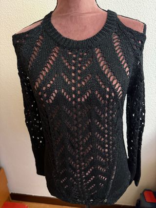 Blusa color negro con hilo plateado. Talla L Nueva sin estrenar Medidas: Longitud 62cm Longitud mangas 60cm Circunferencia busto 96cm Distancia de sisa a sisa 48cm